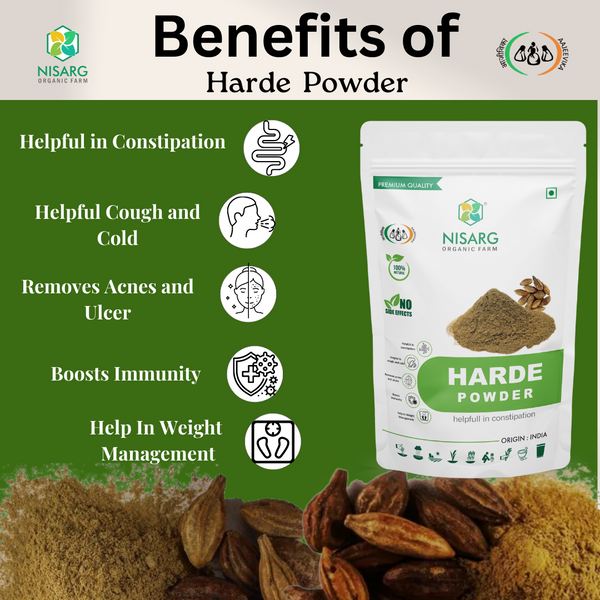 Harde or Terminalia Chebula, is a powerful fruit powder that can help to remove toxins and undigested materials from the body as a mild laxative and aid digestion. It also helps to promote general health, as well as providing support to the eyes, brain, throat, intestine, skin, liver, spleen and urinary tract. In addition, Harde fruit powder may benefit health conditions such as cancer, diabetes, inflammation and stomach disorders.