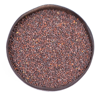 Mustard is one of the most common spices in the Indian kitchen and is used for tempering, pickling, and salad dressings. Black mustard seeds are bigger and possess an earthy, far less bitter flavor than the small mustard (baarik raie) seeds, and are a rich source of oil and protein.