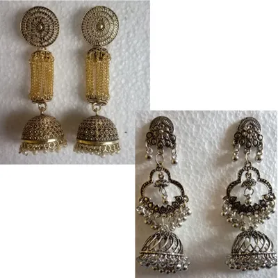 Pack of 2 Oxidised Silver and Gold Plated Earrings from HUMARA FASHION HUB.