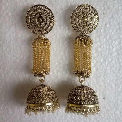 Oxidised Gold Earring us a unique piece of earring. This can be perfectly paired with Traditional Wear like Sarees, 2 piece set of Lehenga, Skirt & Top, Long Angrakha Kurtas, and many more.