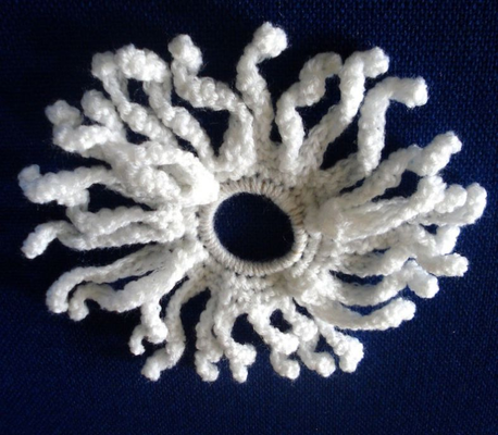Handmade crocheted fringed scrunchie is an excellent hair accessory. It wraps easily around hair and holds securely, can be easily removed and will not damage the hair. It can also be worn around a bun to help to hold the hair in place.