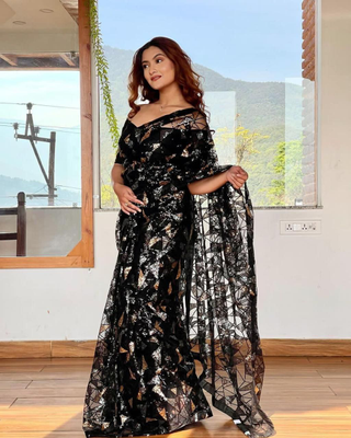 Party Wear Net With Sequence Saree