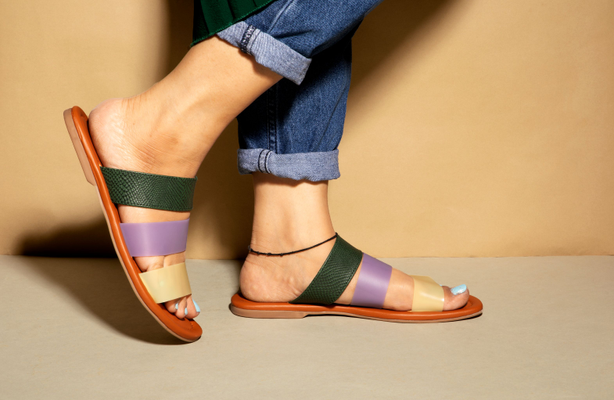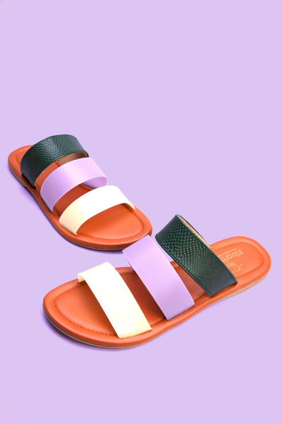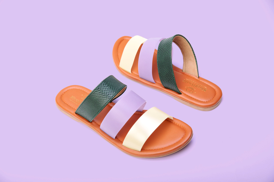 Purple & Green handcrafted matt Flats for women