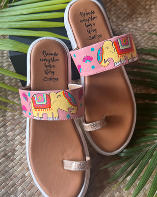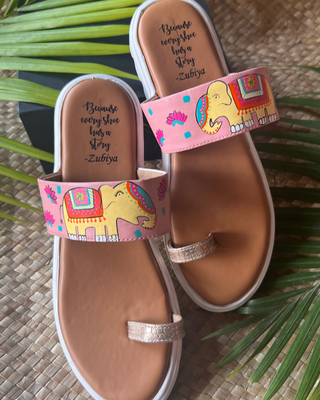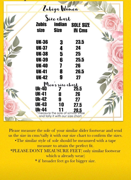 Capture the Sass with our Quirky Hand-Painted collection by Zubiya! These vibrant and intricate designs are sure to bring an added layer of luxuriousness to your shoe wardrobe. Step out in incomparable style and comfort with a pair of one-of-a-kind slides crafted to make a statement. Our cushioned sole ensures maximum comfort and an unforgettable experience on your feet.