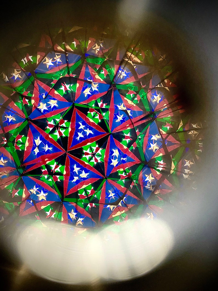 Our kaleidoscope measures approximately 4.5 inches in size and weighs around 390 grams. Please note that this model is in an antiquated vintage burn finish and should be viewed under a light or lamp to see the reflection in the best way. The optimal way to look and see the inner visuals clearly can be found in the last image of the model and in the video.