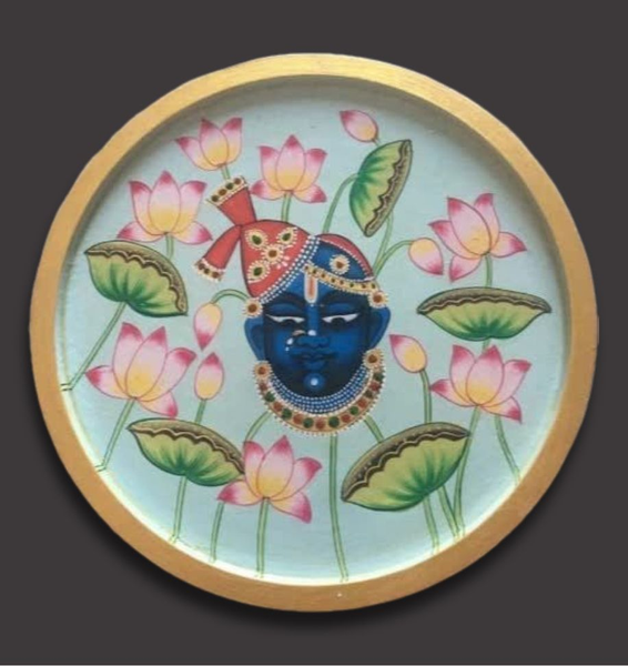 A beautiful wooden plate with Shree Nath Ji face curated to bring charm to your cosy home