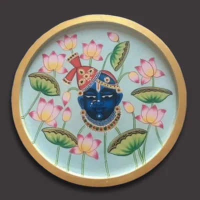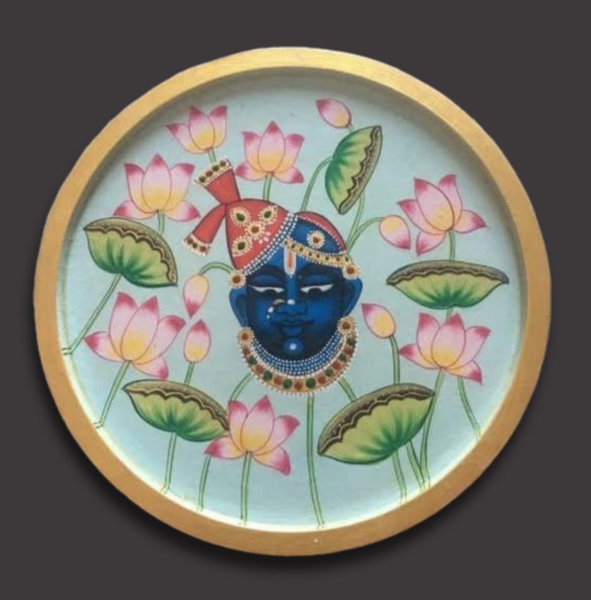 - Features - A beautiful wooden plate with Shree Nath Ji face curated to bring charm to your cosy home Curation has no limits. Everyday is a challenge to create something new. 🌿🌿🌿 Preciously curated Shree Nath Ji face on Wooden Plate to bring live a beautiful classic esthetic on your wall. This unique piece of art is designed in keeping in mind the esthetic vibes of our culture, mythology and art form. This item is handcrafted and handpainted so it has slight imperfection that make it unique piece. 🌹🌹🌹Celebrate Handcrafted Stories & Celebrate Local Crafts of India 🌹🌹🌹
