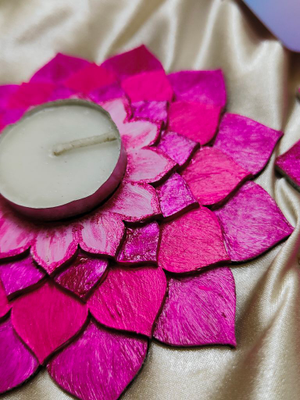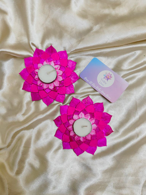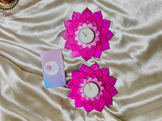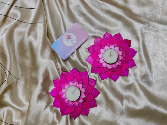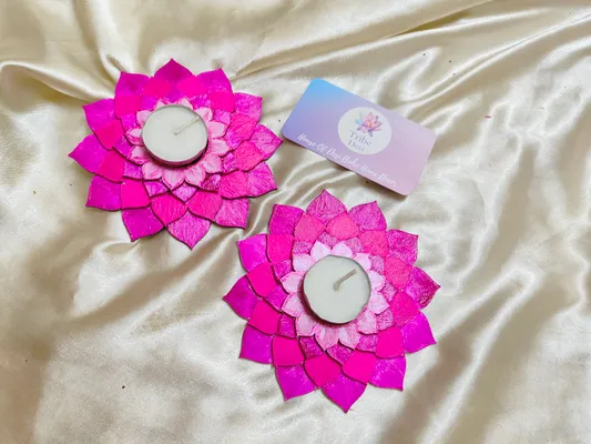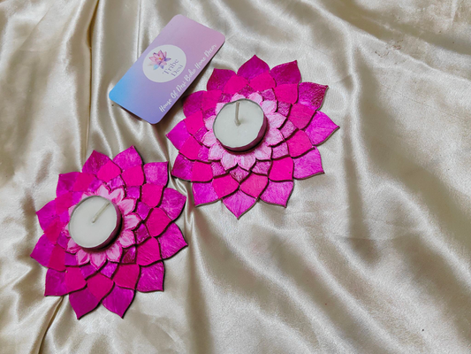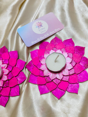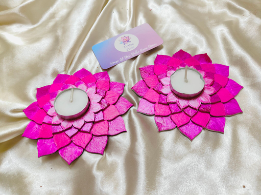 Gradient Pink lotus tea light holders with tea lights. Madf base lotus tea light holder for diwali decor..