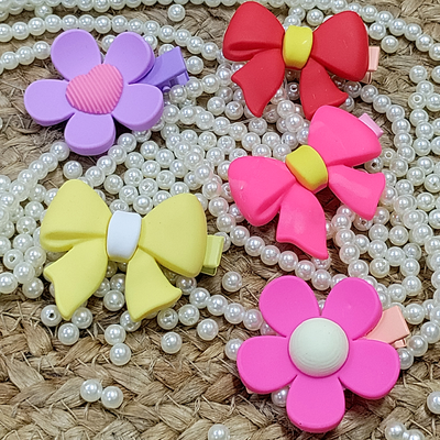 - Features - Material: Plastic, Type: Hair Clip Hair Bow Clip, Color: Multicolored. Dimension: 4 CM, Pack of 5 Hair Clips. Use the product with Care. Do not wash the scrunchies regulary. The elastic might get loose. Store properly in a box after use.