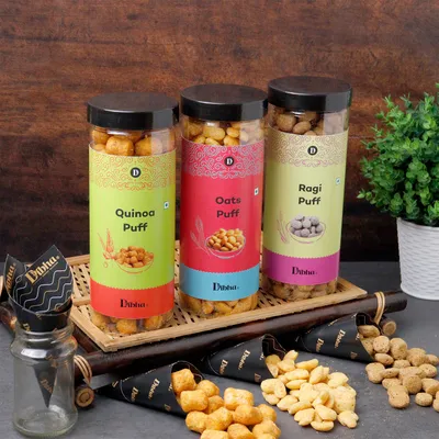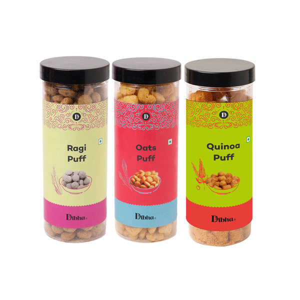 Puffs 100g Each (Pack Of 3)|Oats, Quinoa, Ragi 100g Each| Healthy Roasted Tasty Snacks, Ready to eat