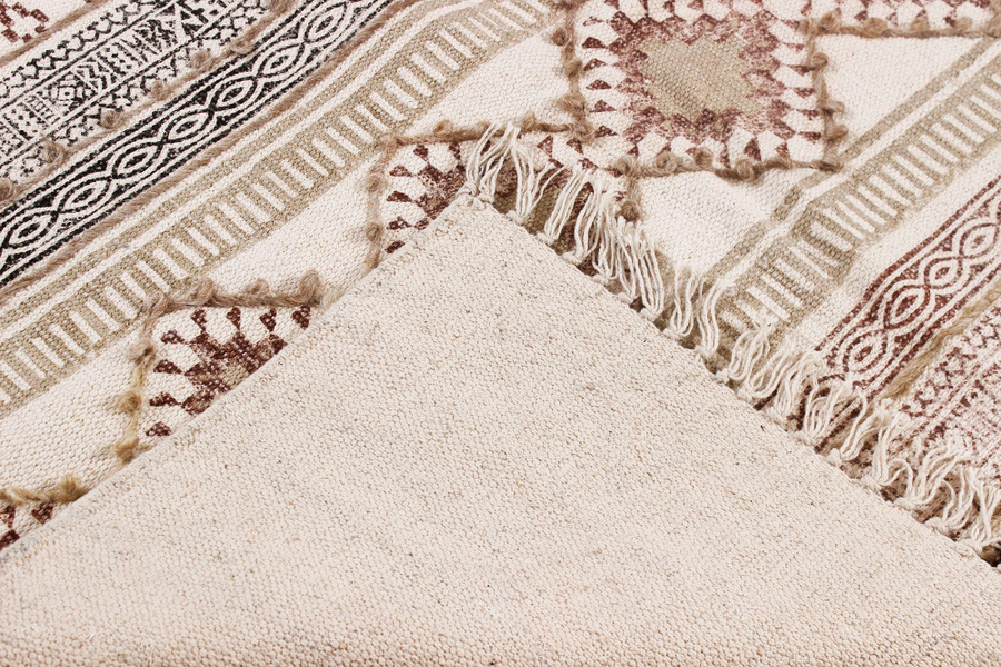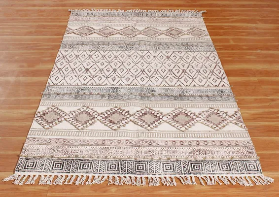 * This is a beautiful handmade Cotton kilim rug weaved on Indian looms stamped with natural vegetable-dyes using hand-made wooden blocks achieving the perfection of block printing art of Jaipur. This is best suitable for your home office entrance, bedroom, living room, kids room, dinning room, kitchen and outdoor patio, terrace, beach and garden.