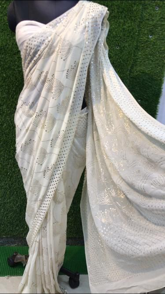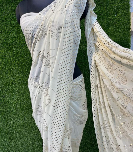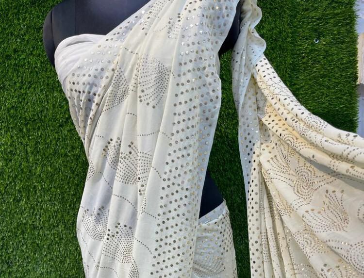 Buy Extremely Gorgeous pure Georgette saree 🥰 intricate heavy mukaish work. One should definitely have this easy to go mukaish work saree in their wardrobe. It's dyeable as well🤩😍✨