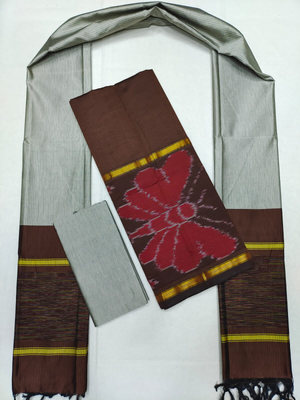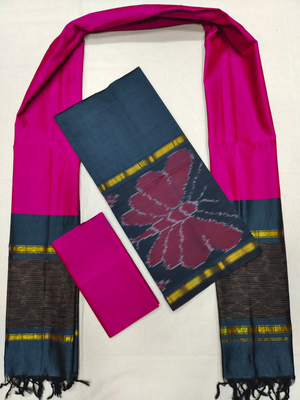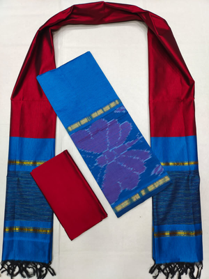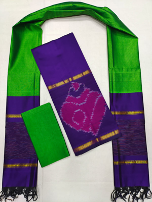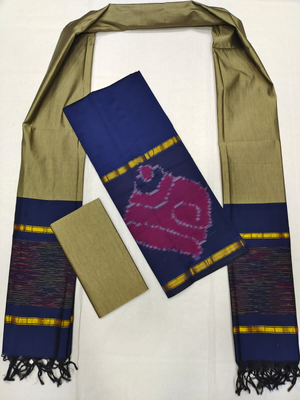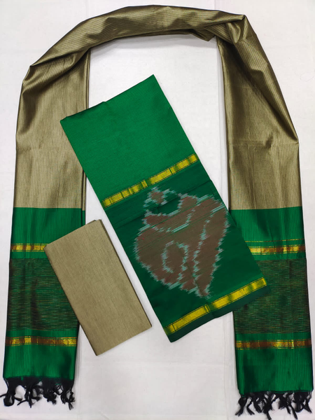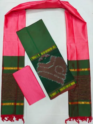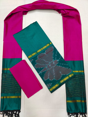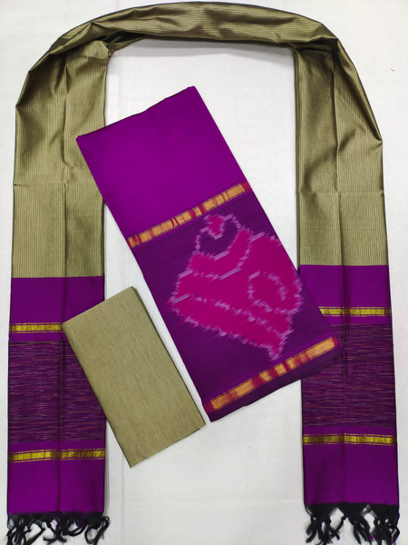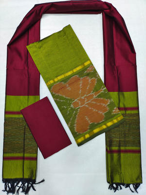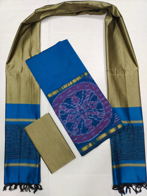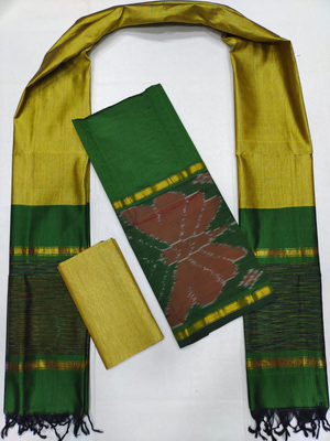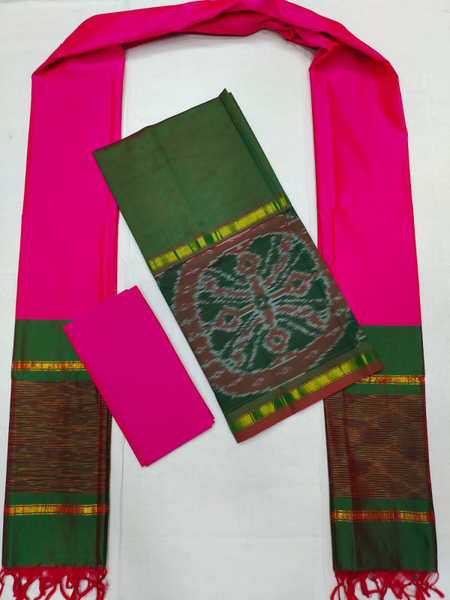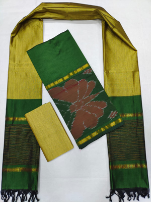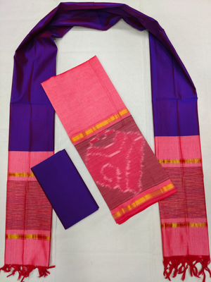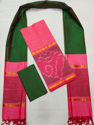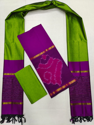Mangalagiri Pattu Pochampalli Border Dress Material Set (Unstiched)