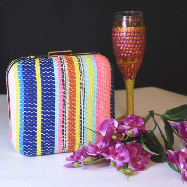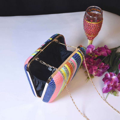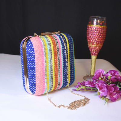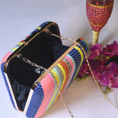 Life is full of colors so your bag should be as colorful as you. Introducing this rainbow clutch, tap it with a plain saree to complete the look. This clutch comes with a detachable golden metal chain.