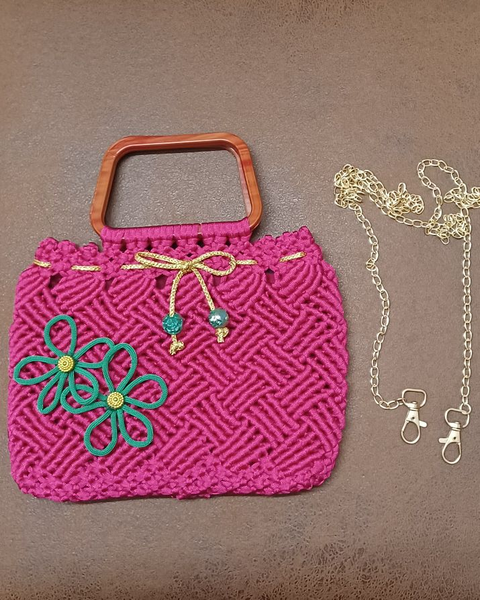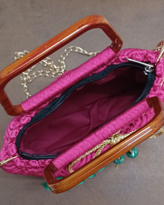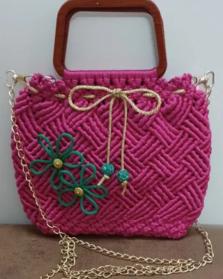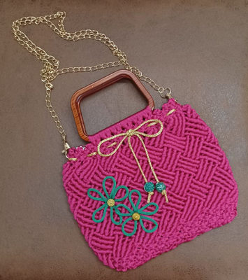 Handmade Rani Pink Color Macrame Party wear Sling Bag / Handbag with detachable Sling