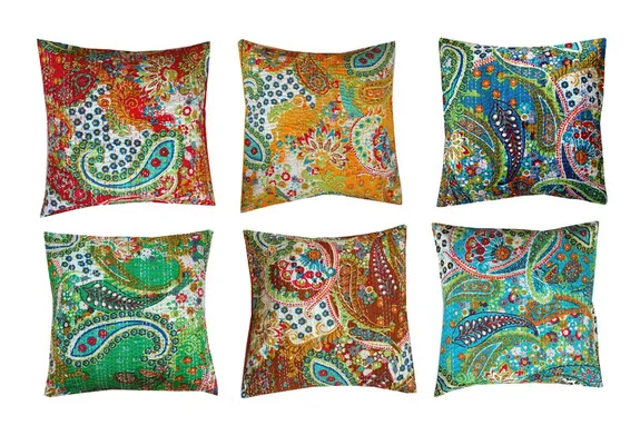 Perfect for home decoration, Use these beautiful cushion covers for your sofa, bed, diwan etc. Color: Multicolor,6 Cushion Covers, Enhance the look of your dream home with these beautiful cushion covers. Specialty: Jaipuri Kantha Work Design, Floral and fruits prints, Set of 6 cushions in different colours. Original product is sold and Trademarked only by Rastogi Handicrafts and full filled by amazon.DRY CLEAN Material: Pure Cotton, Fabric SIZE = 40 X 40 CM AND WEIGHT = 70 GRAM/PIECE Best gift idea for this Christmas