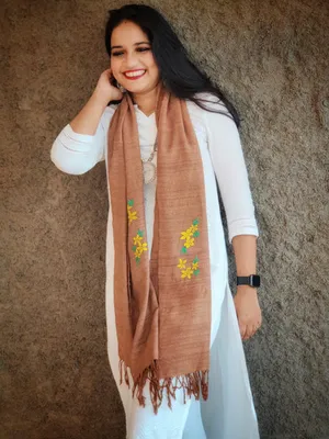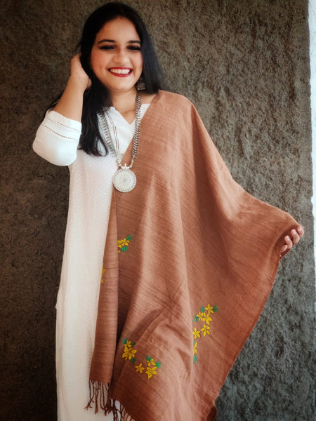 This gorgeous coffee eri* eri handspunned stole with delicate embroidery is sure to rule your heart!