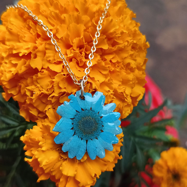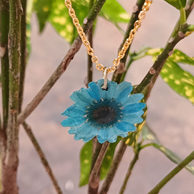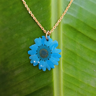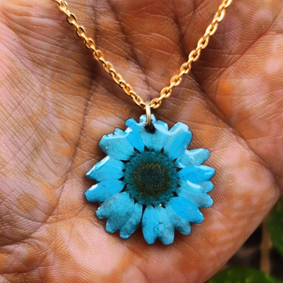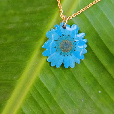 Real Blue Daisy Pendant/ Handmade Pendant/ Resin Jewellery/ Real Flowers Jewellery / Pressed Flower Jewellery