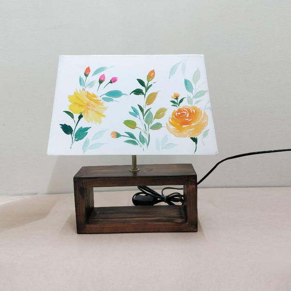Rectangle Table Lamp - Floral 1 Yellow Lamp Shade