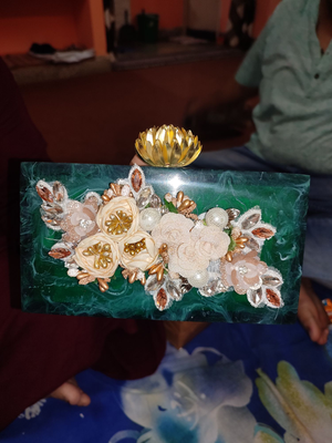 Rectangular Marble Hand Clutch With Flowery Hand Work.
