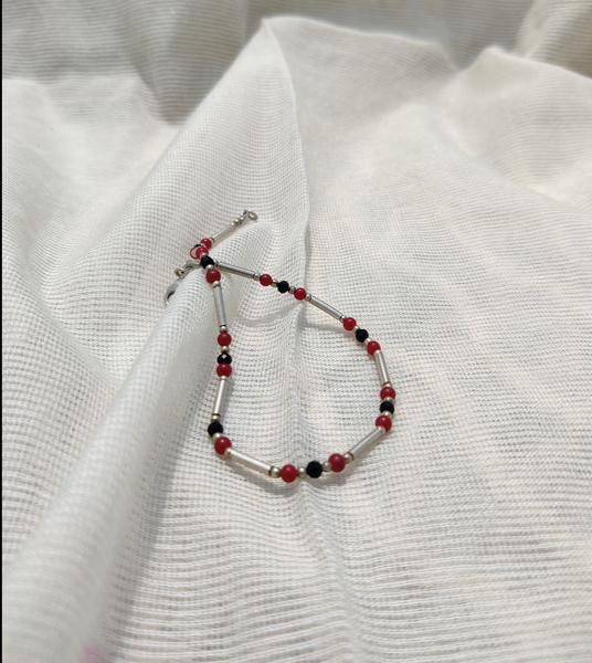 This evil eye anklet has beautiful red beads as well. Its made with 92.5 percent pure silver, can also be worn as a bracelet. Single piece only.