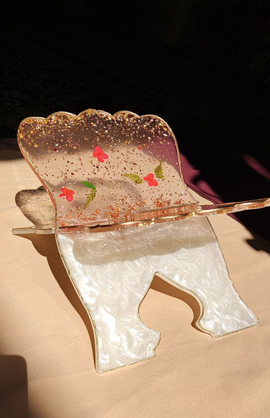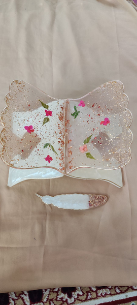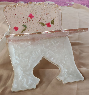 This Holy book holder /bookstand (Rihal) stand has been designed for ease of use, versatility, and compact storage. Once assembled it is robust and stable. It can be used as a book display stand for both closed and open books This beautiful Holy book holder is designed for the ease of reading Religious. Would be a perfect gift for your kids to help them learning and respecting the Holybook. How it is made? Resin of most high quality is used to make this Holybook holder. It is being decorated with gold flakes dried flowers and glitter. After the Holybook holder is being completed, it is defined with gold color to enhance it's look. HANDMADE Resin Stand: All the product are 100% handmade and little imperfections are to be expected. Since the products are completely handmade, the colors might differ slightly than the pictures. Holybook holder can hold a standard size book. So please do not put something very heavy. The Holybook holder might get bendy, so after using it, keep it without being assembled to ensure maximum durability. Perfect for birthday gifts, ramadan gift, wedding gift, gift for mom and loved ones.Resin book stand / Rehal 11.5 * 8 inches .Resin book stand set for reading