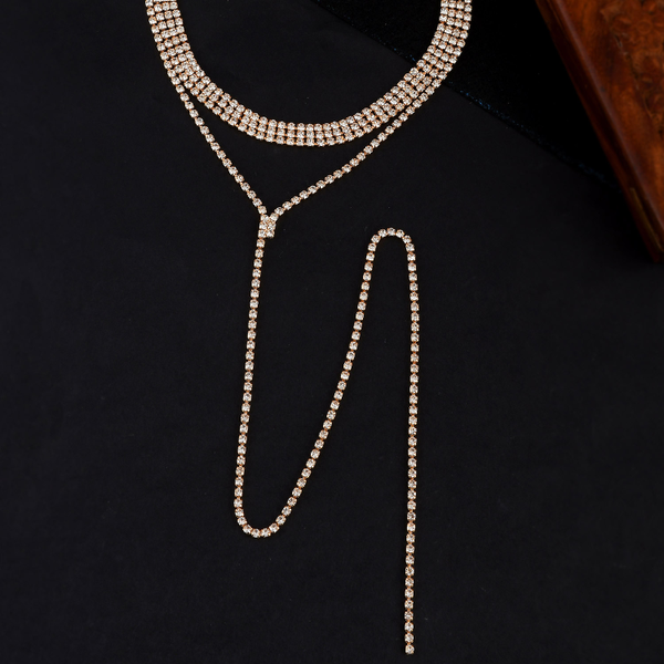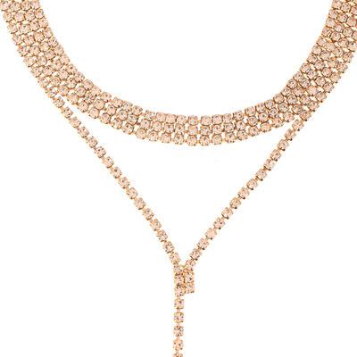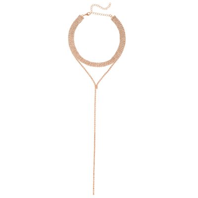 Rhinestone Tassel Drop 3 rows Crystals Choker Alloy Y Shaped Necklace For Women And Girls