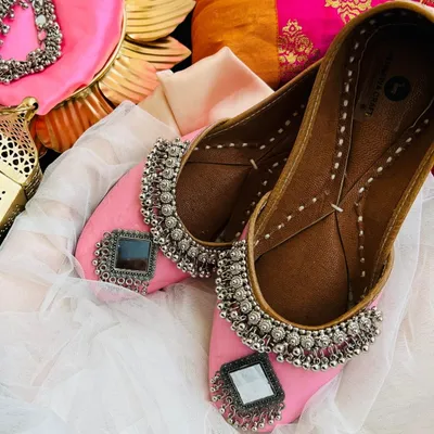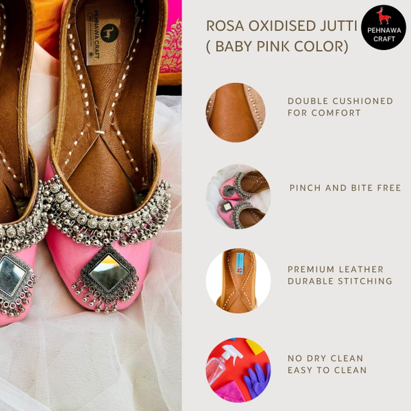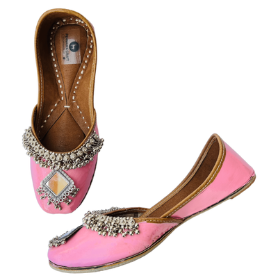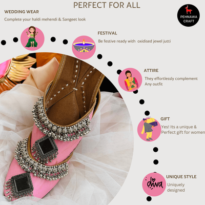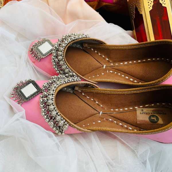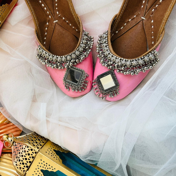 Rosa oxidised ghungroo Punjabi Jutti for Women | Bridal Soft Leather ethnic Juttis(Pink)