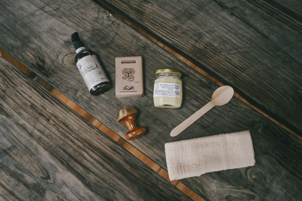Exfoliate your skin with the glove > Use Soy butter candle (Body Massage Candle) on your whole body > Massage it with the Kansa massage wand to deeply nourish your skin and tell your sore muscles tata-goodbye > Apply Hempseed Cold pressed oil to your hair for hair strengthening > Take a relaxing bath with given organic charcoal soap!!! And Voila - your skin care routine is sorted.
