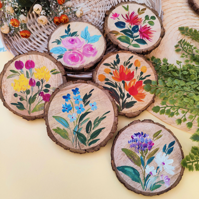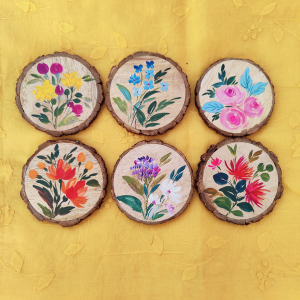 We start making this set once we have your order confirmation. Please bear with minor variations as this is hand painted every single time. The coasters are waterproofed. You can wipe them with a wet cloth. Please dont wash them !