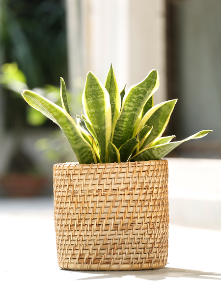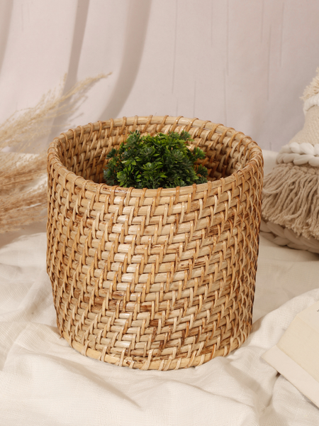 Shilpkara "Rattan Retreat" Handcrafted Eco-Friendly Organic Circular Rattan Organiser Container Bin Multi-util...