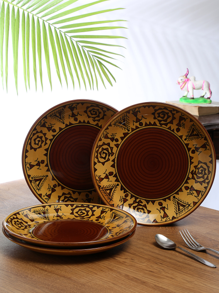 Shilpkara "The Madhubani Tales" Handpainted Ceramic Plates for Dinner Ceramic Dinner Plates & Serving Plates (...