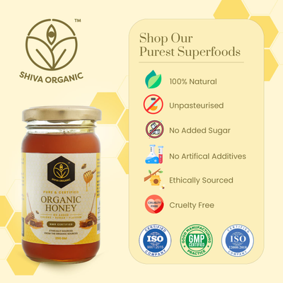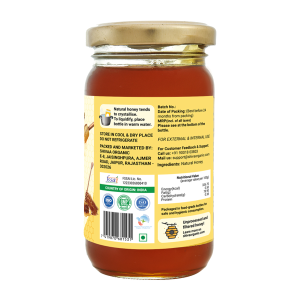 Shiva Organic NPOP Organic Certified Honey - NMR Tested. Pure Natural Honey 250g