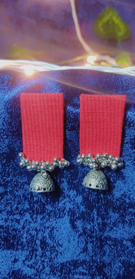 Handmade fabric earrings with silver oxidation. Ideal office wear, casual wear.