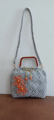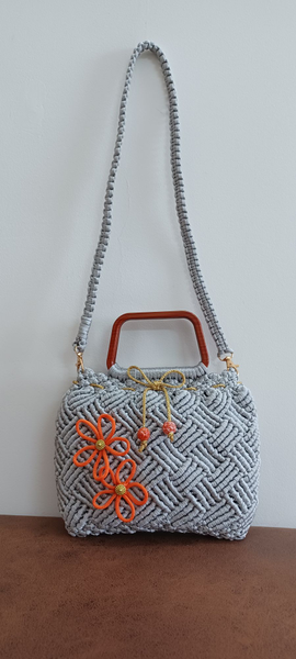 Silver / Light Grey Macrame Sling Bag / Handbag