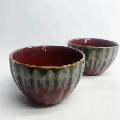 Small Maroon Bowls with Dripping Silver (Set of 2)
