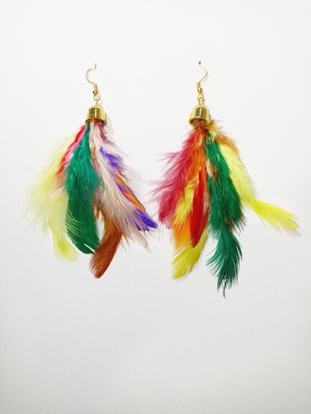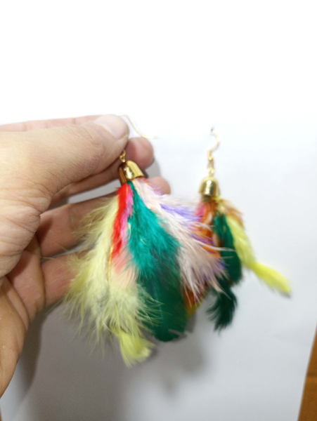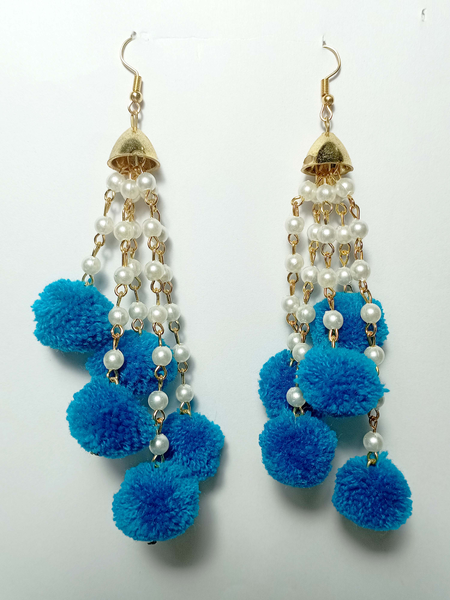 SRA Decor Combo of 2 Multicolour Feather & Blue Pom Pom Earrings