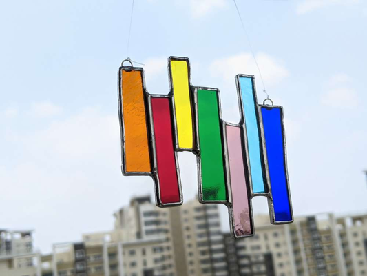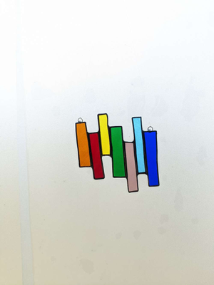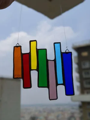 Stained glass rainbow hanging made by hand cutting colorful stripes from glass, foiling and then soldering to make a 7 color rainbow formation.Looks perfect when placed outdoors or against a white background. It's a cheerful home decor for cloudy days and shines bright in sunlight.Dimension: 4 X 4 inches Weight 4 X 4 inches Material 0.1 KGs Color Multi color Style Bohemian, Home decor, Stained glassStained glass rainbow hanging made by hand cutting colorful stripes from glass, foiling and then soldering to make a 7 color rainbow formation. Looks perfect when placed outdoors or against a white background. It's a cheerful home decor for cloudy days and shines bright in sunlight. Dimension: 4 X 4 inches
