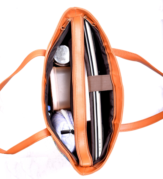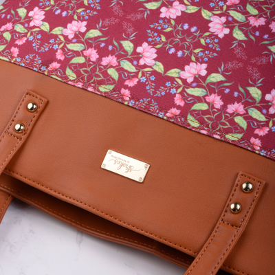 The Summer Florescence Maroon Office bag is one of our newest designs with splendid floral illustrations on a maroon background which is certainly meant to elevate any look! It is durable with vegan leather handles and base, and spacious with 2 main compartments, a separate slot for carrying your laptop and multiple pockets for spare cash and valuables, making it your perfect work companion!