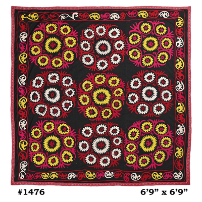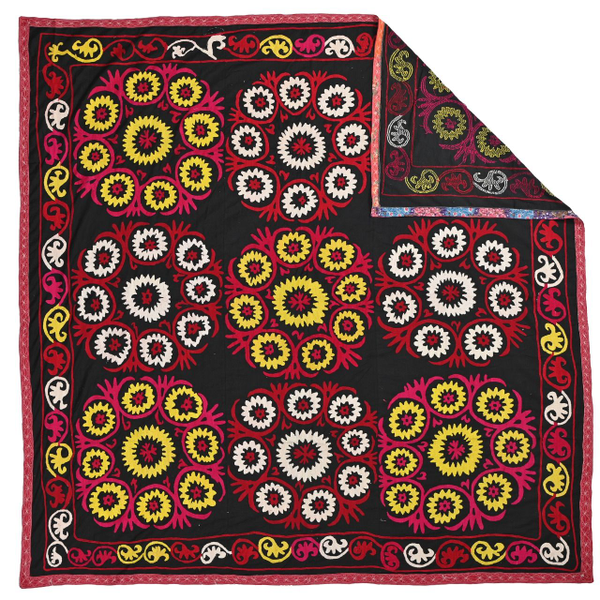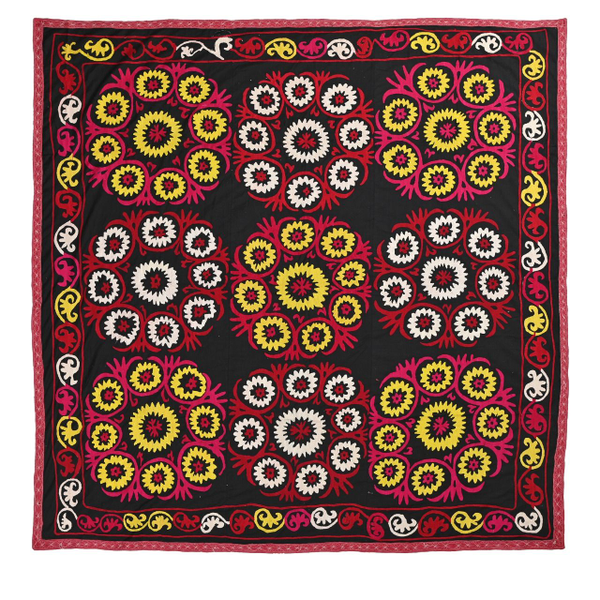Suzani is a type of embroidered and decorative tribal textile made in Tajikistan, Uzbekistan. These hand embroidered vintage suzanis are infused with the character that only comes from everyday use. Originating from nomadic tribes suzani’s have become highly collectable and valued for their beautiful decoration and fine craftsmanship.