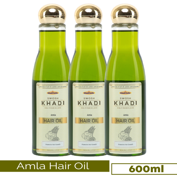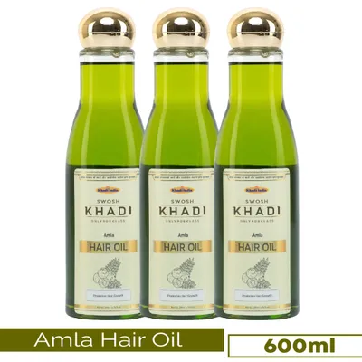 Swosh Khadi Amla Bhringraj Hair Oil For Shiny & Stronger Hairs Reduce Premature Greying Hair Oil Pack Of 3 (20...