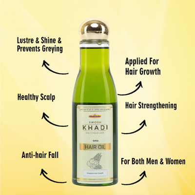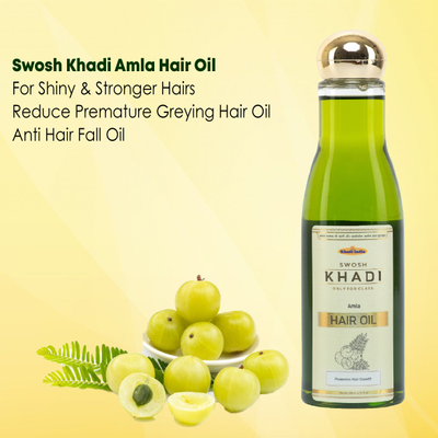Swosh Khadi Amla Bhringraj Hair Oil For Shiny & Stronger Hairs Reduce Premature Greying Hair Oil(Anti Hair Fall Oil) For Both Men & Women | Suitable For All Hair Types, Damaged Hair, Normal Hair | Applied For Lustre & Shine and Prevents Greying| Sulfate Free, Parabens Free, Silicon Free Hair Oil | Applied For Hair Growth, Healthy Scalp, Hair Strengthening, Anti-hair Fall