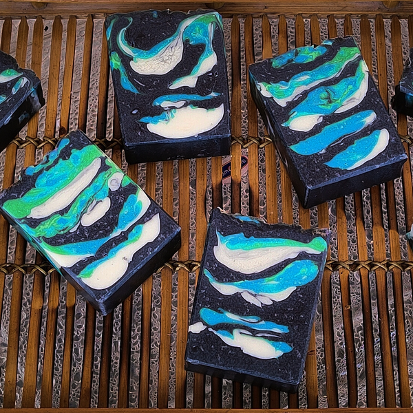 - Ingredients - Saponified 100% Extra Virgin Olive Oil, Coconut Oil,almond oil, tamanu oil, Castor Oil, Sesame oil, shea Butter and activated charcoal, and scented with a blend of Essential Oils.