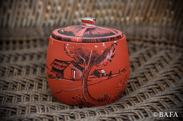 - Color - Terracotta Red , Art Work with Black & White