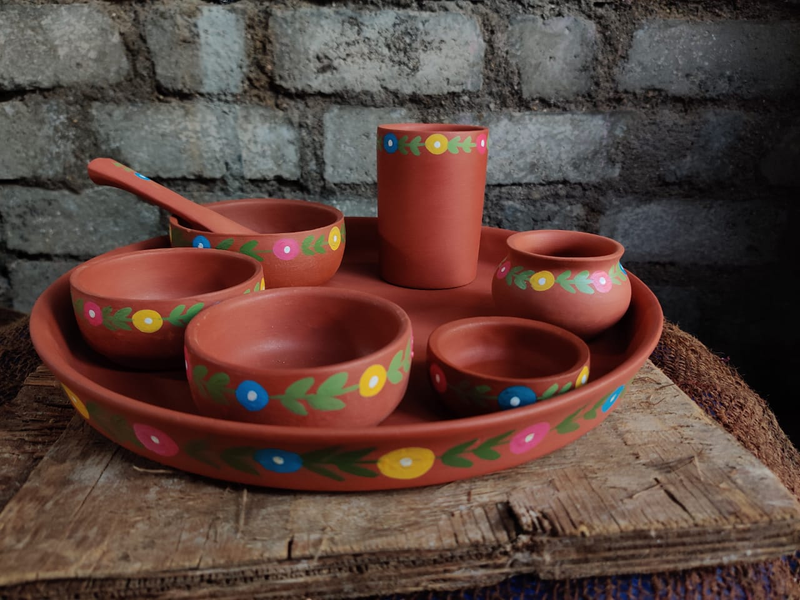 Bring home this beautiful handpainted terracota clay thali set handmade with love by the local artisans.