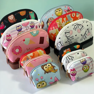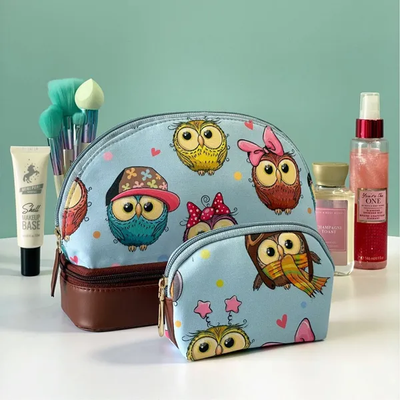 The Double Layer Cosmetic Accessories Bag with Mini Pouch - Baby Owl