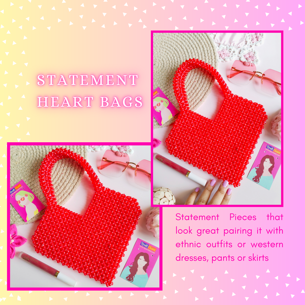 Tipsy Closet Red Heart Bag for Women Girls Stylish Trendy Handmade Beaded Crystal Bags Pinterest Aesthetic
