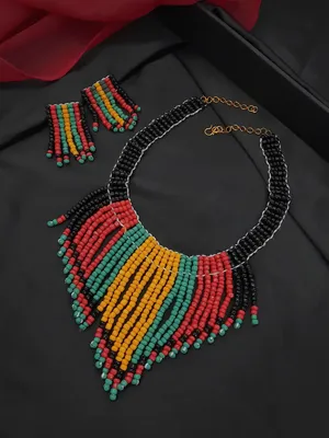 Tribal Design Glass Bead Jewelry Set | Birthday & Anniversary Gift