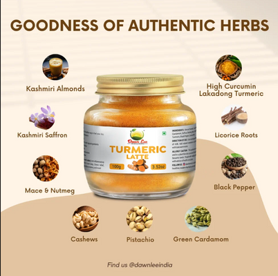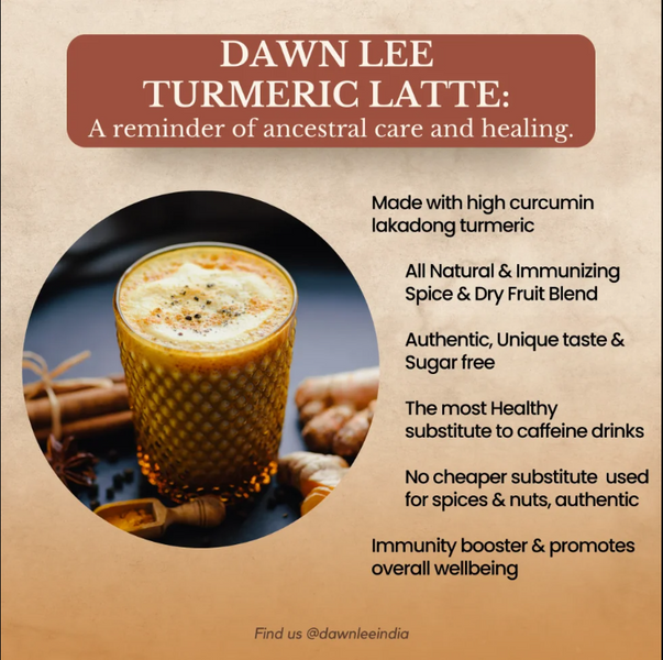 Turmeric latte, also known as golden milk or haldi doodh, aligns with Ayurvedic principles. Turmeric’s curcumin content, especially when high (more than 6%), offers therapeutic benefits. In Ayurveda, milk is considered nourishing, and when combined with turmeric, it supports joint health and digestion. Black pepper in the latte enhances curcumin absorption. Dawn Lee Turmeric latte is a unique blend with add-on natural memory-boosting herbs which promotes overall wellbeing.