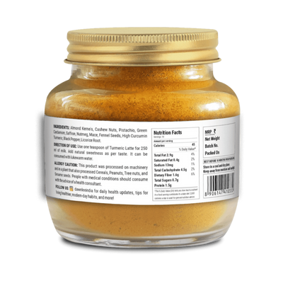 “The World’s First Golden Milk Formula with Lal Haldi, Kashmiri Mamra, and Brain-Stimulating Herbs – A Multifunctional Ancient Drink.”